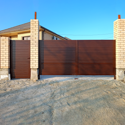 Ворота Alutech въездные распашные с калиткой